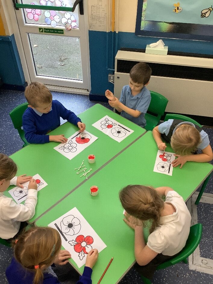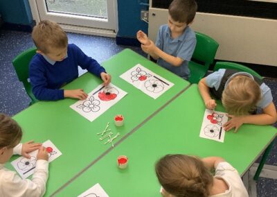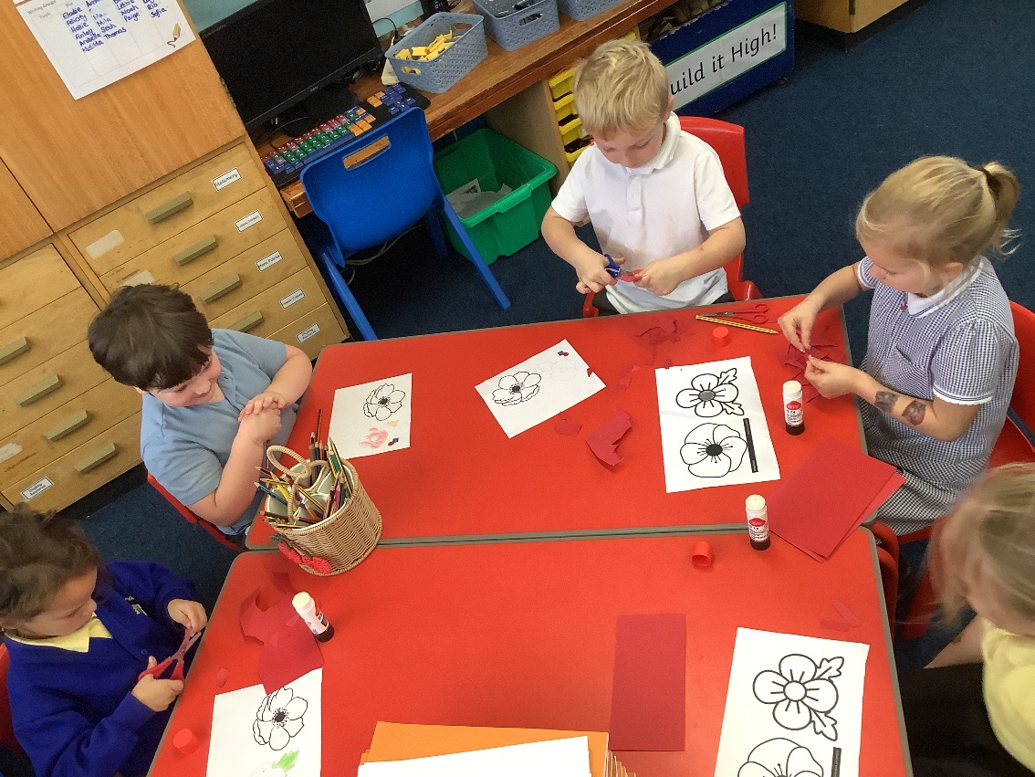 We have been sharing what we already know about Remembrance Day and why it is important. Then we worked together to find answers to some of the questions that they children had, such as ‘why do we wear a poppy and not a different flower?’ The children worked as a team to create a bidding prayer and piece of artwork to be shared at our Remembrance service.
